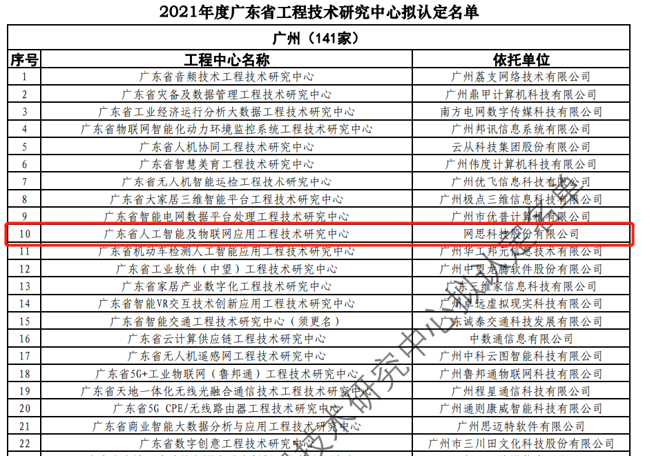 日前,广东省科技厅发布2021年度广东省工程技术研究中心名单。经过层层筛选、专家评审,依托世界杯体育平台官方网站-世界杯(中国) 建设的“广东省人工智能及物联网应用工程技术研究中心”榜上有名。广东省工程技术研究中心主要依托省内行业、领域具有科技实力的、拥有一定规模以上创新型企业建设,部分依托高校和科研院所组建。工程中心旨在